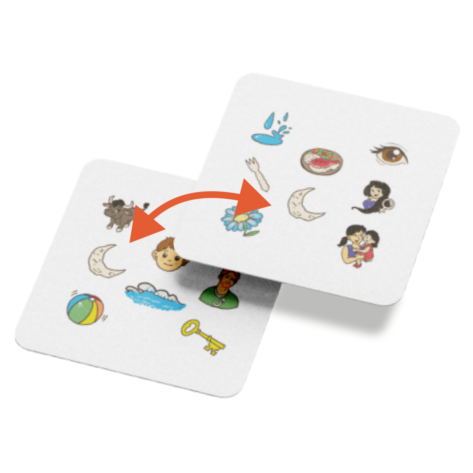 Everyone flips their card at the same time and starts looking for matching images.